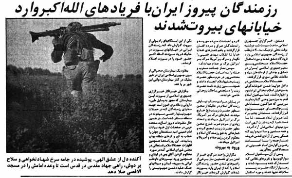 در همین دوران که با حمله عراق به مناطق مسکونی ایلام همزمان شده است، زمزمه های جلوگیری از ورود سربازان ایرانی به لبنان به گوش می رسد که آیت الله خامنه ای، در مقام ریاست جمهوری، آیت الله هاشمی، در مقام ریاست قوه مقننه و مهندس موسوی به عنوان نخست وزیر به شدت این طرز تفکر را محکوم می کنند.
