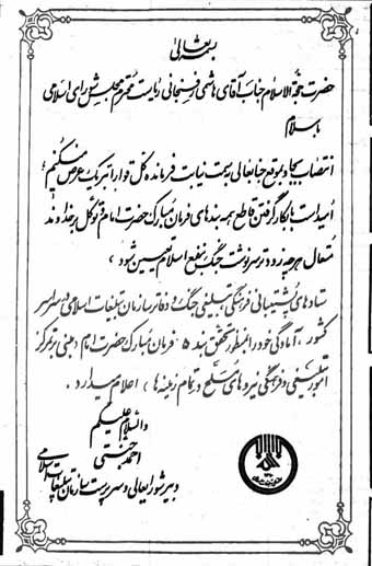 در تصویر زیر، اطلاعیه تبریک آیت الله احمد جنتی را مشاهده می کنید که در روزنامه جمهوری اسلامی -صفحه اول- به چاپ رسید.