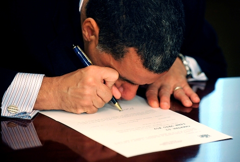 دیوید پیترسون فرماندار دموکرات ایالت نیویورک آمریکا در حال امضای یک لایحه قانونی
