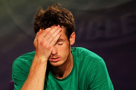 اندی موری تنیس باز مشهور بریتانیایی در کنفرانس خبری در لندن پس از شکست در برابر رافائل نادال رقیب اسپانیایی اش در مرحله نیمه نهایی رقابت های جام ویمبلدون