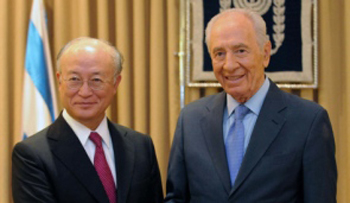 شیمون پرز رییس جمهوری اسراییل در دیدار با "یوکیو آمانو " مدیر کل آژانس بین المللی انرژی اتمی ادعا کرد که جمهوری اسلامی ایران دولت تل آویو را با سلاح های اتمی تهدید می کند !