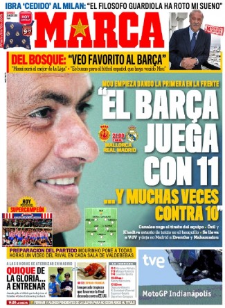 - مورینیو :" بارسلونا با یازده بازیکن بازی می کند ... و اغلب در برابر 10"