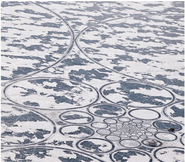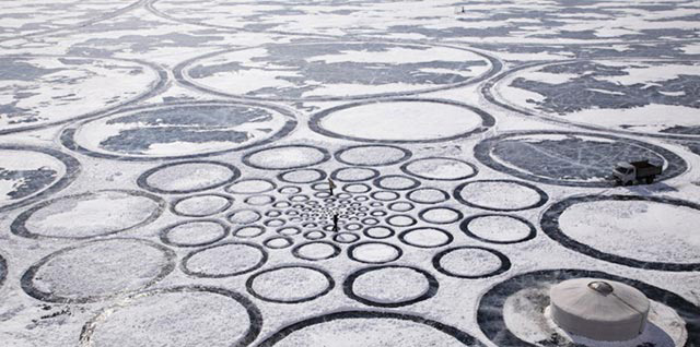 آقای Jim Denevan هنرمند آمریکایی با کنده کاری بر روی دریاچه Baikal در Siberia موفق به خلق این آثار جالب توجه شده است. این هنرمند به خلق آثار با الگوهای منظم و تکرار و در ابعاد بسیار کوچک تا بسیار بزرگ شهره است.