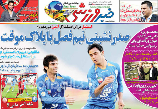 صفحه نخست روزنامه هاي ورزشي امروز (عكس)