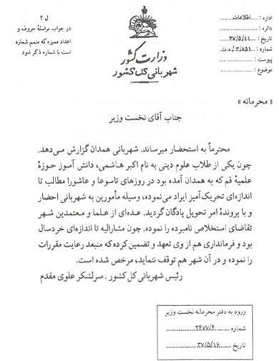 پایگاه اطلاع رسانی آیت الله هاشمی رفسنجانی یكی از اسناد بازداشت و آزادی وی را كه در ایام جوانی و در تقارن تاسوعاو عاشورای حسینی روی داده منتشر كرده است.
