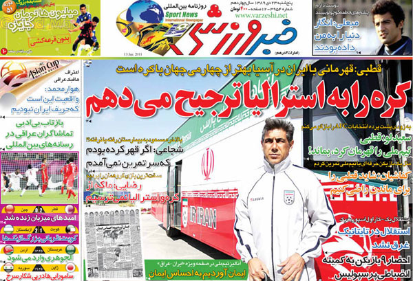 صفحه نخست روزنامه هاي ورزشي امروز (عكس)