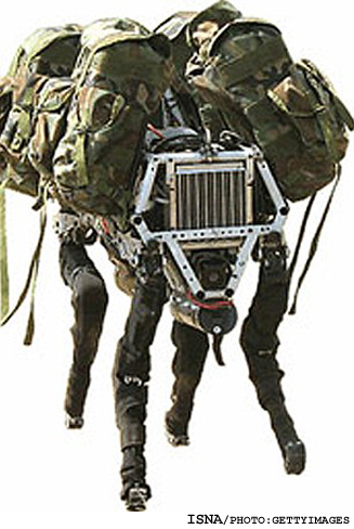 روبات «بيگ داگ»روبات «بيگداگ» قادر به حمل چهار كولهپشتي تجهيزات سربازان در زمينهاي سنگي و پر فراز و نشيب است كه خودروهاي چرخدار قادر به عبور از آنها نيستند.