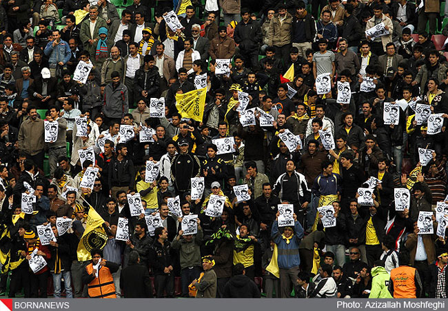 در حاشیه این دیدار هواداران سپاهان کاریکاتور عادل فردوسی پور مجری برنامه نود را در دست گرفتند تا بدین شکل اعتراض خود را نسبت به او و برنامه اش اعلام کنند. این تماشاگران معتقدند که فردوسی پور علیه امیر قلعه نویی و این باشگاه موضع گیری می کند و به دنبال تخریب سپاهان است.