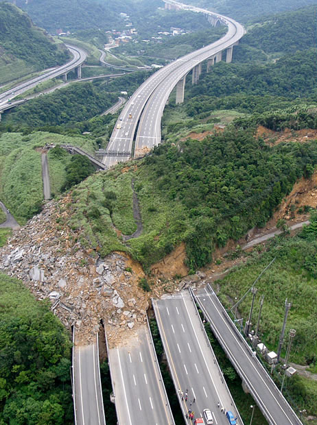 رانش زمين به روي بزرگراهي در شمال تايوان