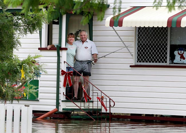 ماهيگيري از آب گل آلود. يك زوج استراليايي در شهر چين چيلا به اين نتيجه رسيده اند كه از سيل