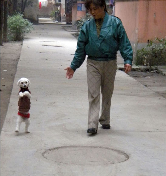 قدم زدن یک سگ با صاحب خود در شهر چنگدو در استان سیچوان چین