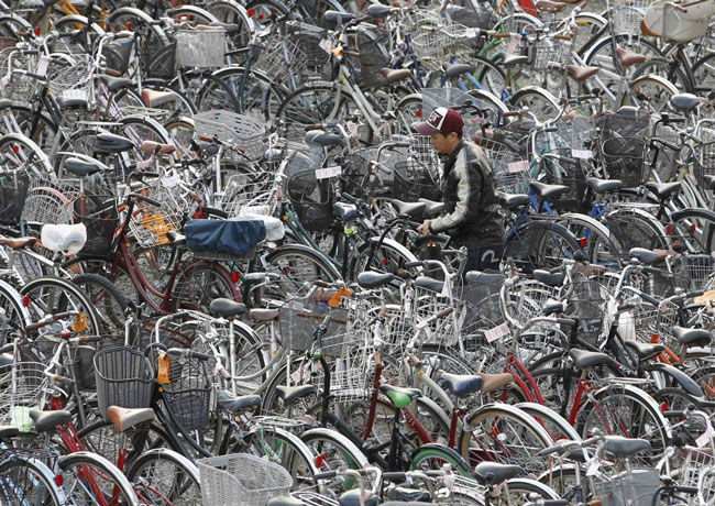 پارکینگ راه آهن شهر تاچیکاوا  ژاپن مملو از دو چرخه است