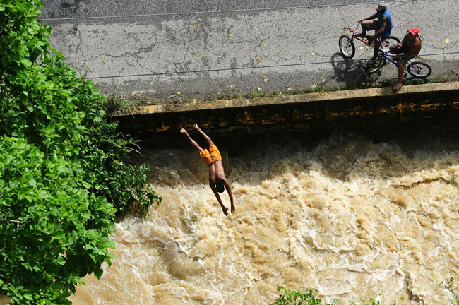 شیرجه یک نوجوان ونزوئلایی به داخل رودخانه برای یافتن عضوی از اعضای خانواده اش که گمان می رود در سیلاب به داخل رودخانه افتاده باشد