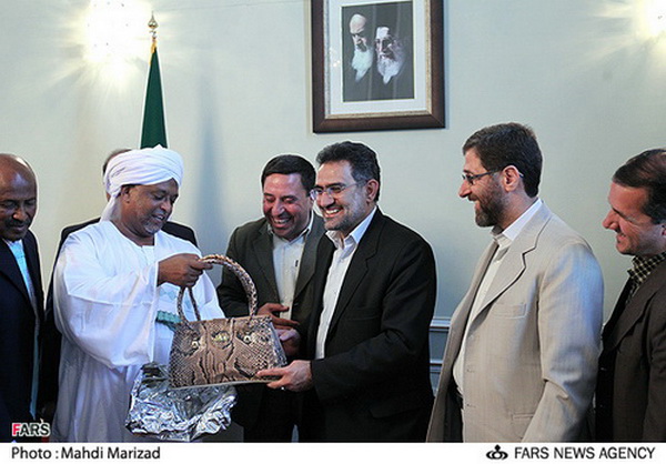 در جریان بازدید از مجموعه تالار وحدت، وزیر فرهنگ سودان در دیدار سیدمحمد حسینی وزیر فرهنگ و ارشاد اسلامی، یك كیف زنانه به او هدیه دادكه از پوست مار است!