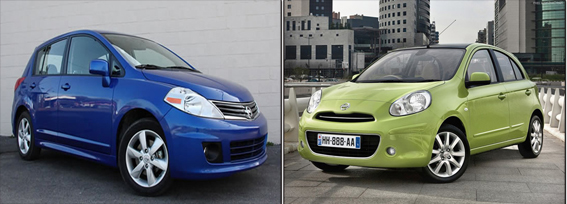 سمت راست: نيسان ميكرا ، سمت چپ: نيسان ورسا