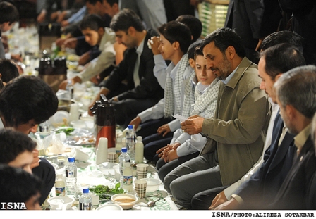 در اولين افطار ماه مهماني خدا و نزول قرآن جمعي از ايتام تحت پوشش كميته امداد امام خميني (ره) و سازمان بهزيستي مهمان رييسجمهور بودند.