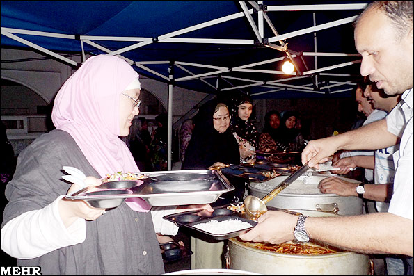 سپس از مهمان ها با غذاهای مطبوع ایرانی بخصوص غذاهای مخصوص ماه مبارک رمضان پذیرایی شد که مورد استقبال فراوان مسلمانان روزه دار واقع گردیده است.