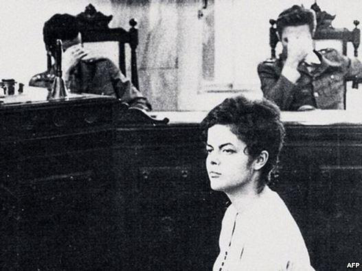 عصر ايران - عكس زير متعلق به خانم ديلما روسف رييس جمهوري فعلي برزيل است كه حدود 40 سال پيش در دادگاه نظامي ريودوژانيرو در حال محاكمه است . خانم روسف در اين دادگاه علي رغم قريب به 3 هفته شكنجه نام هيچ كدام از همرزمانش را لو نداد و در مقابل قضات نظامي دادگاه از ترس انتشار چهره شان در رسانه ها با دست صورت خود را پوشانده اند.