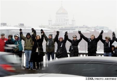 به گزارش ايسنا به نقل از خبرگزاري رويترز، معترضان در خيابان دايره شكل "گاردن رينگ" مسكو كه 16 كيلومتر طول دارد در كنار يكديگر ايستادند و زنجيره انساني تشكيل دادند.