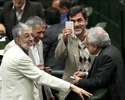 * البته در گوشه دیگر مجلس صحبت های طولانی بیژن نوباوه، علی مطهری، روح الله حسینیان و رامین نماینده اصلاح طلب مجلس نیز جلب توجه می کرد.