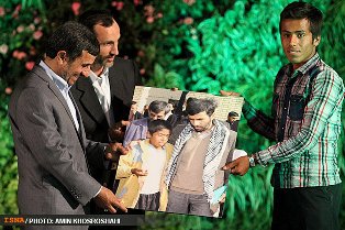 اين دختر هفت ساله در اين مراسم بار ديگر گفت: پدر واقعي من احمدينژاد است و من افتخار ميكنم شجاعترين مرد ايران پدر من است.