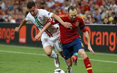 شب گذشته دو تیم اسپانیا و پرتغال در مرحله نیمه یورو 2012 به مصاف هم رفتند و پس از 120 دقیقه تلاش، اسپانیایی ها در ضربات پنالتی 4 بر 2 از سد پرتغال گذشتند.