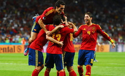 پيروزي 4 بر صفر اسپانيا مقابل ايتاليا در فينال يورو 2012 قاطعترين پيروزي يك تيم در تاريخ ديدارهاي فينال رقابتهاي يورو و جام جهاني محسوب ميشود. همچنين اسپانياييها با اين پيروزي، تبديل به نخستين تيمي شدند كه سه جام معتبر بينالمللي را به صورت متوالي كسب كردهاند (يورو 2008، جام جهاني 2010 و يورو 2012).