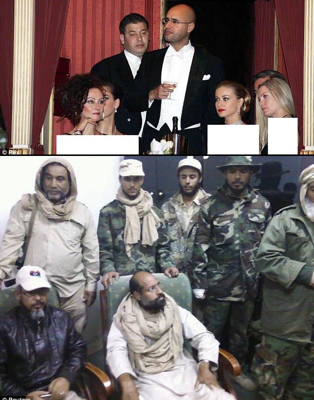 عصر ایران - سیف الاسلام قذافی پسر ارشد معمر قذافی رهبر سابق لیبی در دو عکس اول : هنگام اقامت در اروپا (قبل از انقلاب لیبی ) و عکس دوم پس از دستگیری به دست انقلابیون