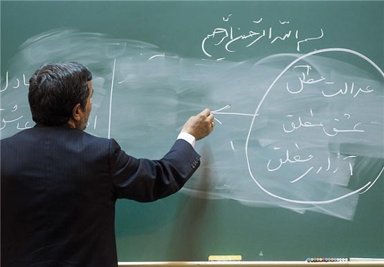 انسجام ملی جوانان ایرانی» و از سوی احمدی نژاد بر روی تخته سیاه وسط سالن
