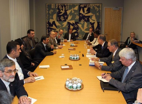 عصر ایران - محمود احمدی نژاد رئیس جمهور ایران یکشنبه شب به وقت محلی (بامداد امروز دوشنبه به وقت تهران) با بان کی مون دبیر کل سازمان ملل متحد در مقر این سازمان در نیویورک ملاقات کرد.