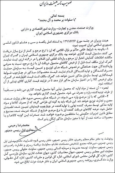 دولت به تازگی بخشنامهای را خطاب به وزارتخانههای صنعت، معدن و تجارت و امور اقتصادی و دارایی و بانک مرکزی صادر کرده است که بر مبنای آن، دستورالعملی برای قیمتگذاری و نحوه توزیع کالاهای وارداتی درج شده است.