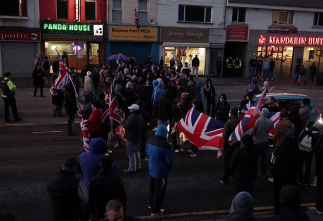 عصر ایران تظاهرات از سوی طرفداران اتحاد با بریتانیا صورت گرفت و بهانه آن تصمیم هفته گذشته شورای شهر بلفاست در محدود کردن نصب پرچم بریتانیا در این شهر بود.