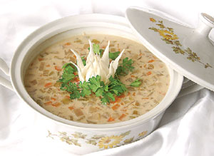 طرز تهیه:هویج،سیب زمینی،پیاز و شلغم را پوست بگیرید و به اندازه بند انگشت خرد کنید و در قابلمه مناسبی ریخته و روی آن آب بریزید تا جایی که آب روی آنها قرار بگیرد و بگذارید تا بپزند و در 30 دقیقه آخر قرص مرغ را با دستتان پودر کرده و در سوپ بریزید و به همراه قارچ خرد شده و جعفری خرد شده و نمک و بگذارید تا با هم بپزند و در آخر میتوانید کمی آن را با گوشت کوب بکوبید تا همگی کمی له شوند،اگر هم دوست دارید میتوانید،همان طوری که هست میل کنید.هنگام میل کردن مقدار آبلیمو روی سوپ بریزید و نوش جان کنید،فکر کنم این سوپ برای کوچولوهای عزیز هم خوب باشه.