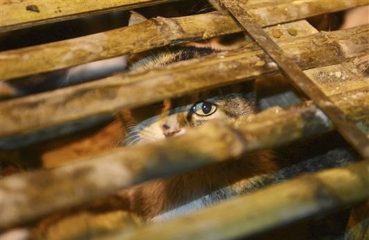 گربه ها در کشور چین، پیش از کشتار و مصرف در رستوران، در دسته های ۲۵ تایی تا دو ماه در قفس های کوچک ۶۰ در ۹۰ سانتی متری نگه داشته می شوند. بسیاری از این حیوانات تا پیش از رسیدن به مقصد دوام نمی آورند و در بدترین شرایط جان می دهند. برآورد شده که سالیانه نزدیک به چهار میلیون گربه در کشور چین کشته می شوند.