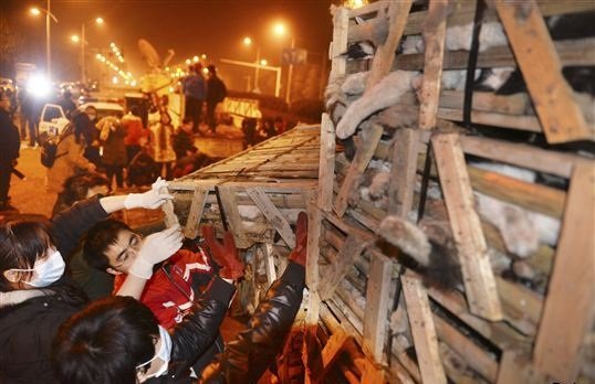 به گزارش روزنامه دیلی میل، کامیون حامل گربه های زندانی که برای «مصرف» در رستوران های گوانگدونگ بارگیری شده بود، در میانه راه در چانگشا واقع در استان هونان تصادف کرد و تأخیری ۲۴ ساعته به گروهی ۵۰ نفره از دوستداران حیوانات در محل فرصت داد که با همراه داشتن غذا، آب و شیر، پیش از انتقال گربه ها به انجمن حمایت از حیوانات چانگشا به نجات این موجودات زبان بسته بشتابند.