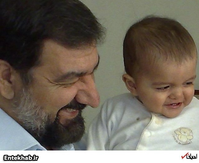 محسن رضایی و نوه ی چندماه اش (تصویر)