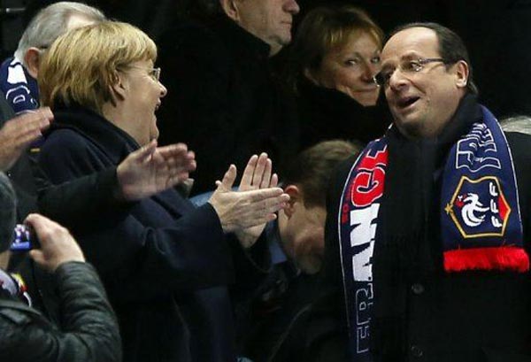 مرکل برنده کل کل فوتبالی با اولاند (عکس)