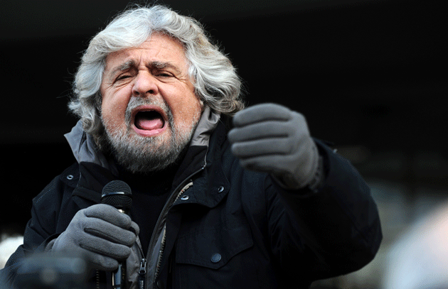 "بپ گریلو" کمدین ایتالیایی که در انتخابات اخیر این کشور با رهبری یک جنبش سیاسی مخالف سیاست های ریاضت اقتصادی و حوزه یورو تبلیغات گسترده ای صورت داده بود توانست در انتخابات در جایگاه سوم قرار گیرد.