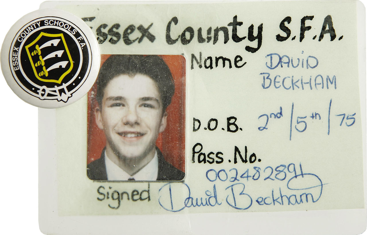 این تصویر کارت دانش آموزی دیوید بکام در مدرسه فوتبال اسکس کانتی است.