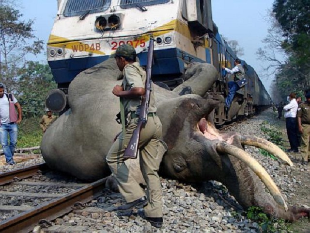 زیست نیوز: کارمند سازمان جنگل های هند در حال بررسی صحنه برخورد قطار با یک فیل بالغ در گوآتی. فیل بر اثر این حادثه جان خود را از دست داد.