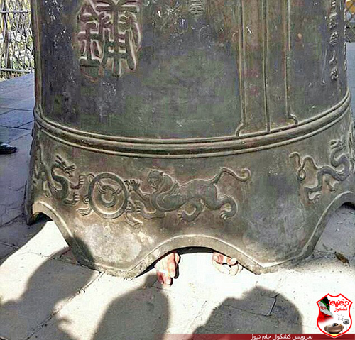 در نهایت آتش نشانان با استفاده از جرثقیل این ناقوس را از روی آقای وانگ بلند کردند.