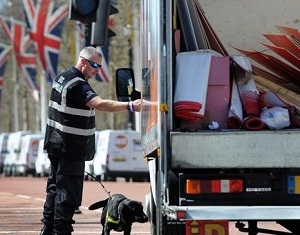 همچنین سگ های تربیت شده برای کشف و شناسایی مواد منفجره از روز شنبه به همراه ماموران در خیابان های لندن حضور داشتند و خودروهایی را که وسایل و تجهیزات مربوط به این مسابقه را به سمت خط پایان حمل می کردند، بازرسی می نمودند.