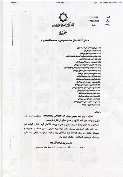 عصر ایران؛ سعید شمس - «با توجه به اعلام وزارت صنعت، معدن و تجارت؛ واردات کالاهای کره، شکر، گوشت قرمز و دام زنده طبق تعرفه‌های پیوست، دارو، مواد اولیه داروئی، شیر خشک و تجهیزات و ملزومات پزشکی در سال ۱۳۹۲ به نرخ مبادله‌ای بوده و ارائه درخواست گواهی ثبت آماری بر مبنای نرخ مزبور (مبادله‌ای) بلامانع خواهد بود.»