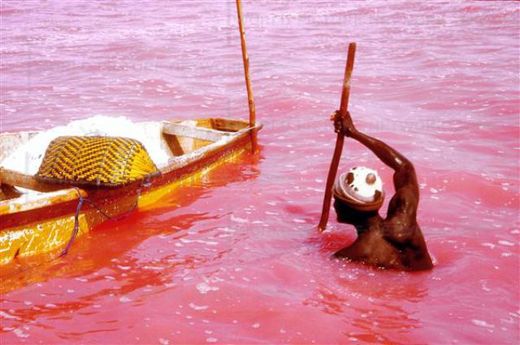 دریاچه Retba در سنگال، واقع درغرب آفریقا برخلاف تمام دریاچه‌‌‌های دنیا رنگی شبیه به‌رنگ توت فرنگی دارد. این دریاچه به خاطر رنگ جالب آن مورد توجه قرار گرفته است به گفته یکی از محققان، زمانی که از داخل هلی‌کوپتر به این دریاچه نگاه می‌کردیم، به نظر می‌رسید که قایق‌‌‌ها روی مخلوطی از شیر و توت فرنگی شنا می‌کردند.