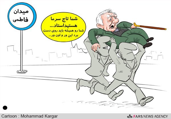 حضور عزت الله انتظامی کنار مشایی زمان ثبت نام کاندیداتوری (کاریکاتور)