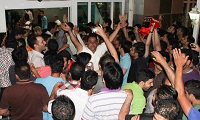 استقبال کنندگان از کریمی سپس با حدود 50 خودرو علی کریمی را اسکورت کردند.