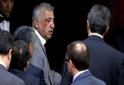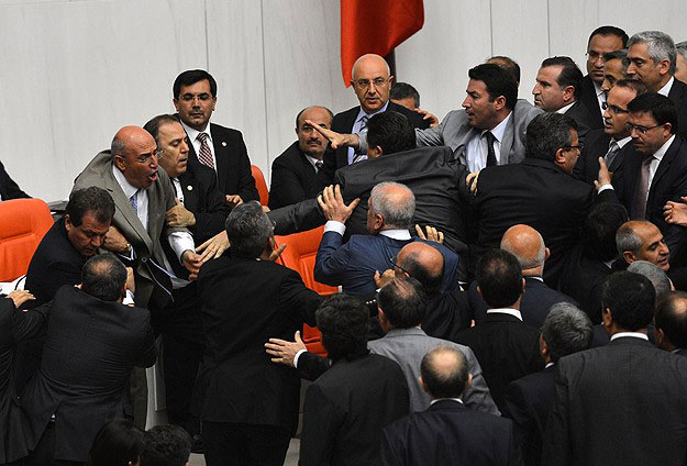 نمایندگان عضو حزب مخالف " جمهوریخواه خلق"(CHP) و نمایندگان حامی دولت از حزب حاکم " عدالت و توسعه" در جریان توضیحات معاون نخست وزیر درباره سوال های نمایندگان حزب مخالف به جان هم افتادند و همان گونه که در عکس زیر مشخص است در اثر حمله نمایندگان مخالف دولت به یک نماینده حزب حاکم، ابروی او پاره شد.