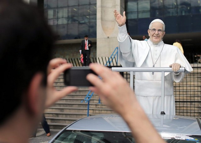 چرخاندن مجسمه فایبر گلاسی پاپ فرانسیس در شهرهای برزیل(ریودوژانیرو)