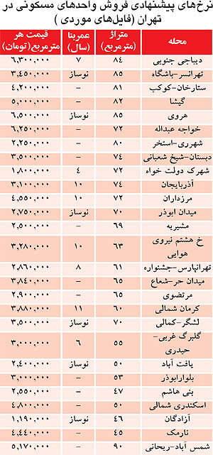در بین این دسته از فایل‌های فروشی، واحدهای مسکونی نوساز تا چند سال ساخت سپرده شده‌اند که هر ‌‌متر مربع اغلب واحدهای مسکونی واقع در شرق و جنوب تهران بین 2 تا 4 میلیون تومان و واحدهای مسکونی در غرب تهران متری بالاتر از 4 میلیون تومان قیمت گذاری شده‌اند.