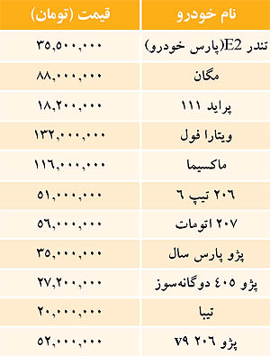 قيمت خودرو‌هاي داخلي در بازار (جدول)